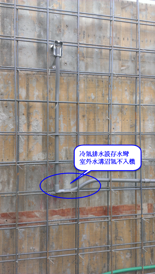 排水管另加鋼筋保護施工避免灌漿後牆面皸裂